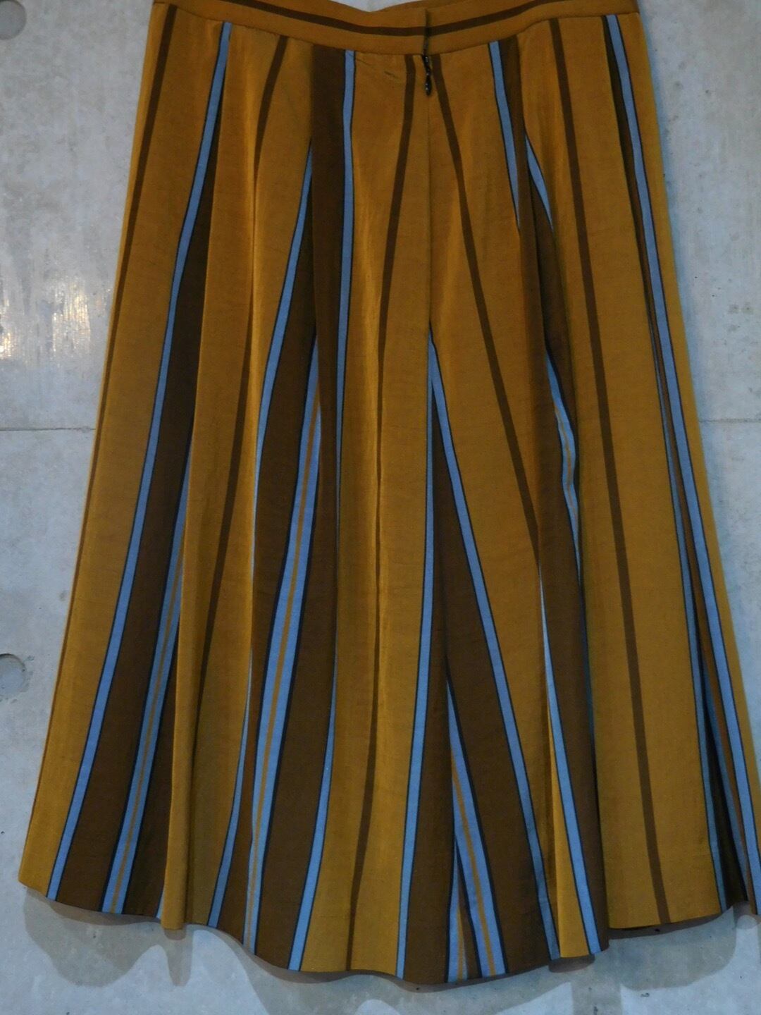 ひざ丈のフレアスカート。カラフルなストライプがお洒落。