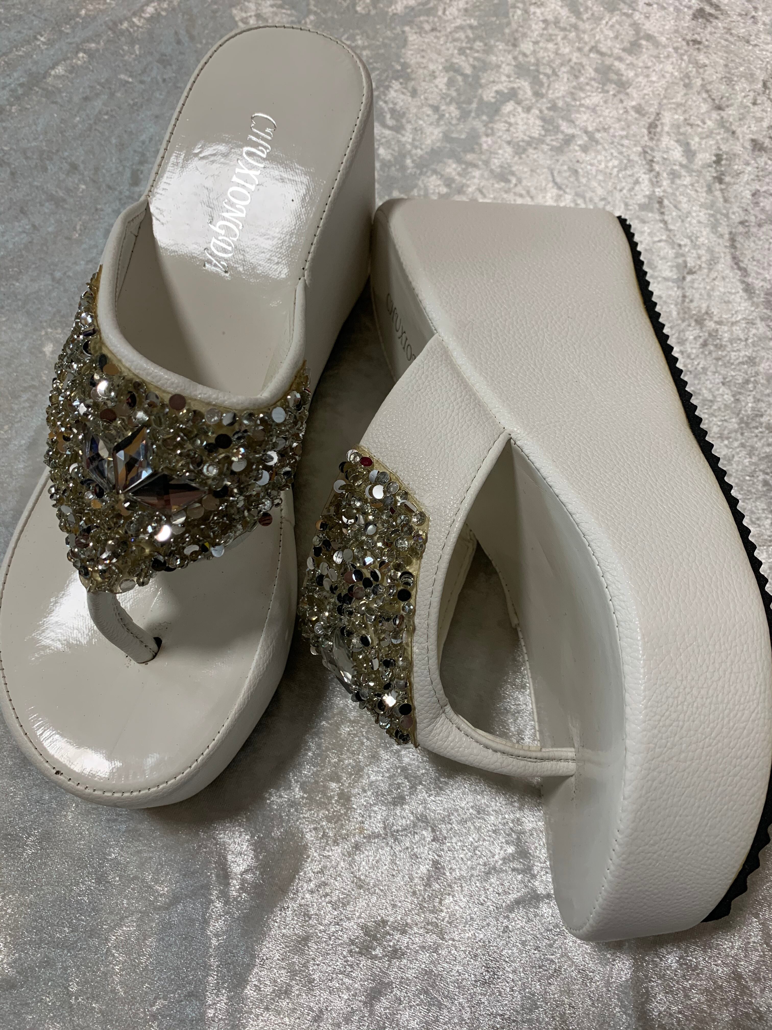 ホワイトカラーとビジューでゴージャスだけども上品に決まる1足。