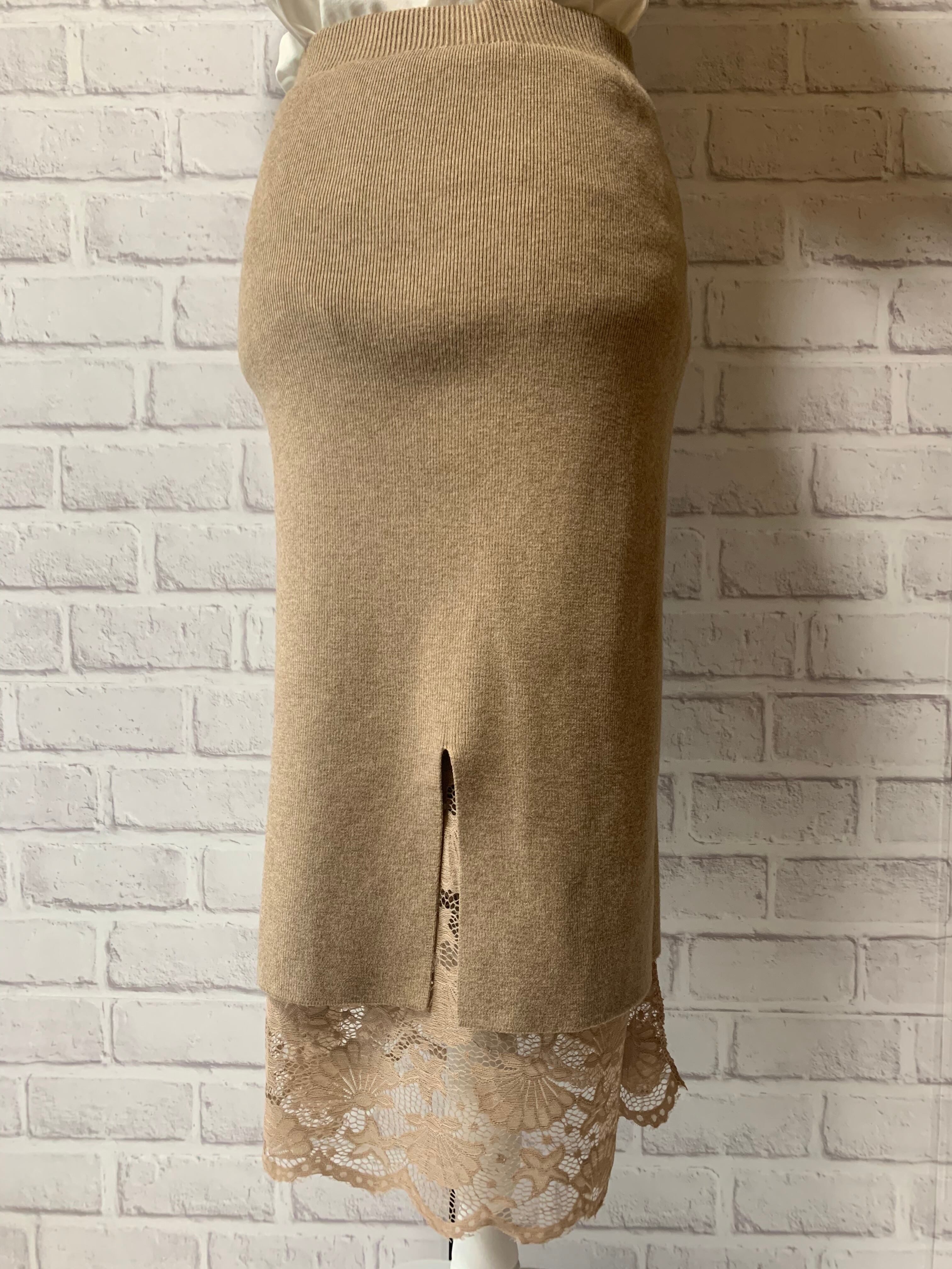 ニット&総レースリバーシブルタイトスカート