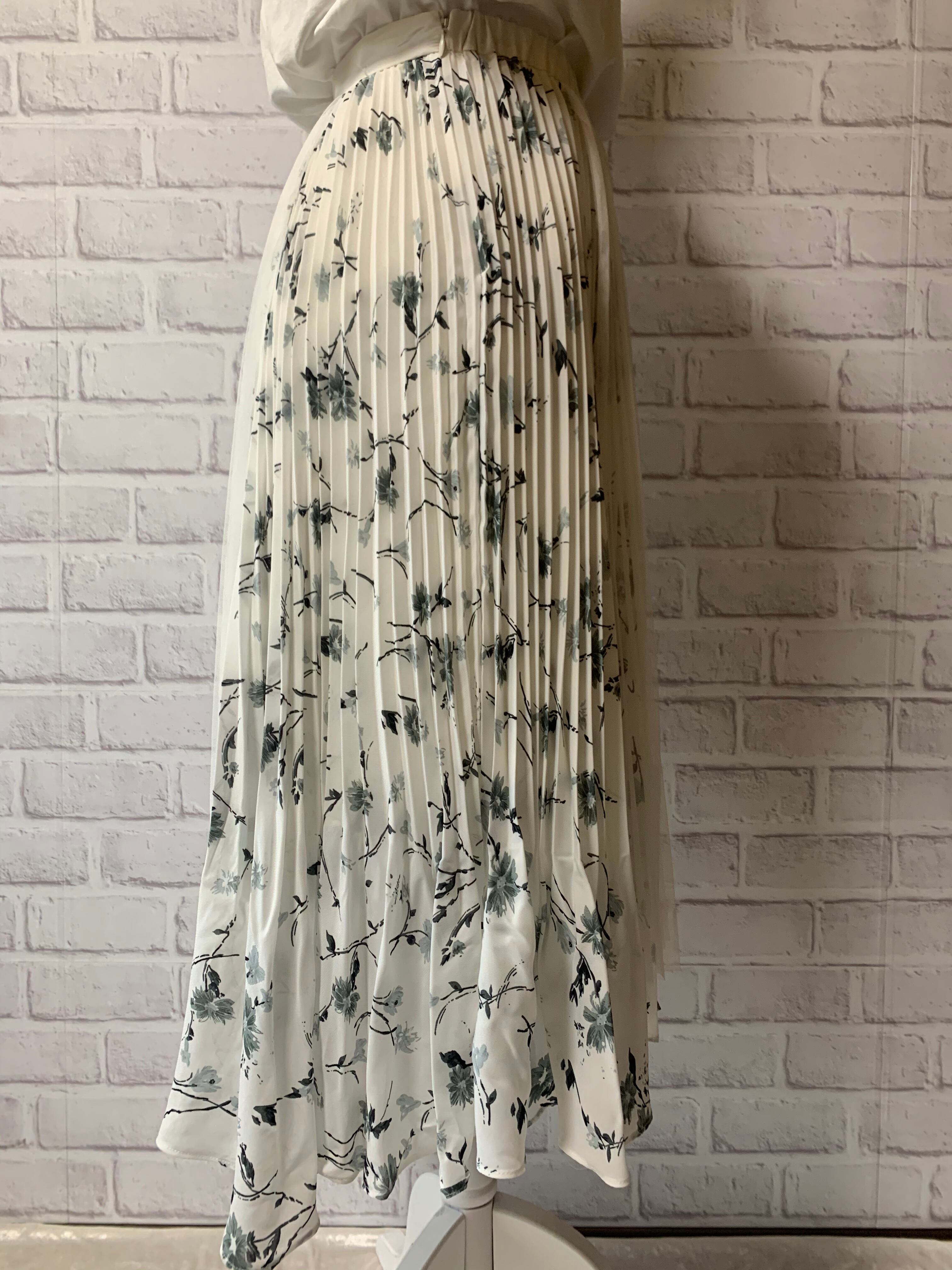 ドットやお花柄と盛り沢山の柄をプリーツでまとめた可愛いデザイン。