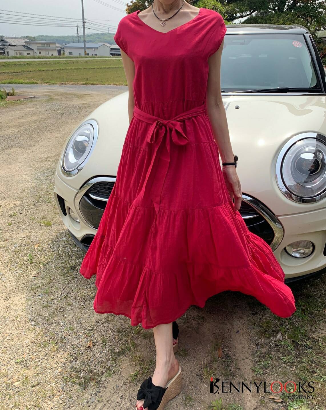 飽きのこないシンプルさとざっくり開いた前後のカットが涼しくて楽チン。