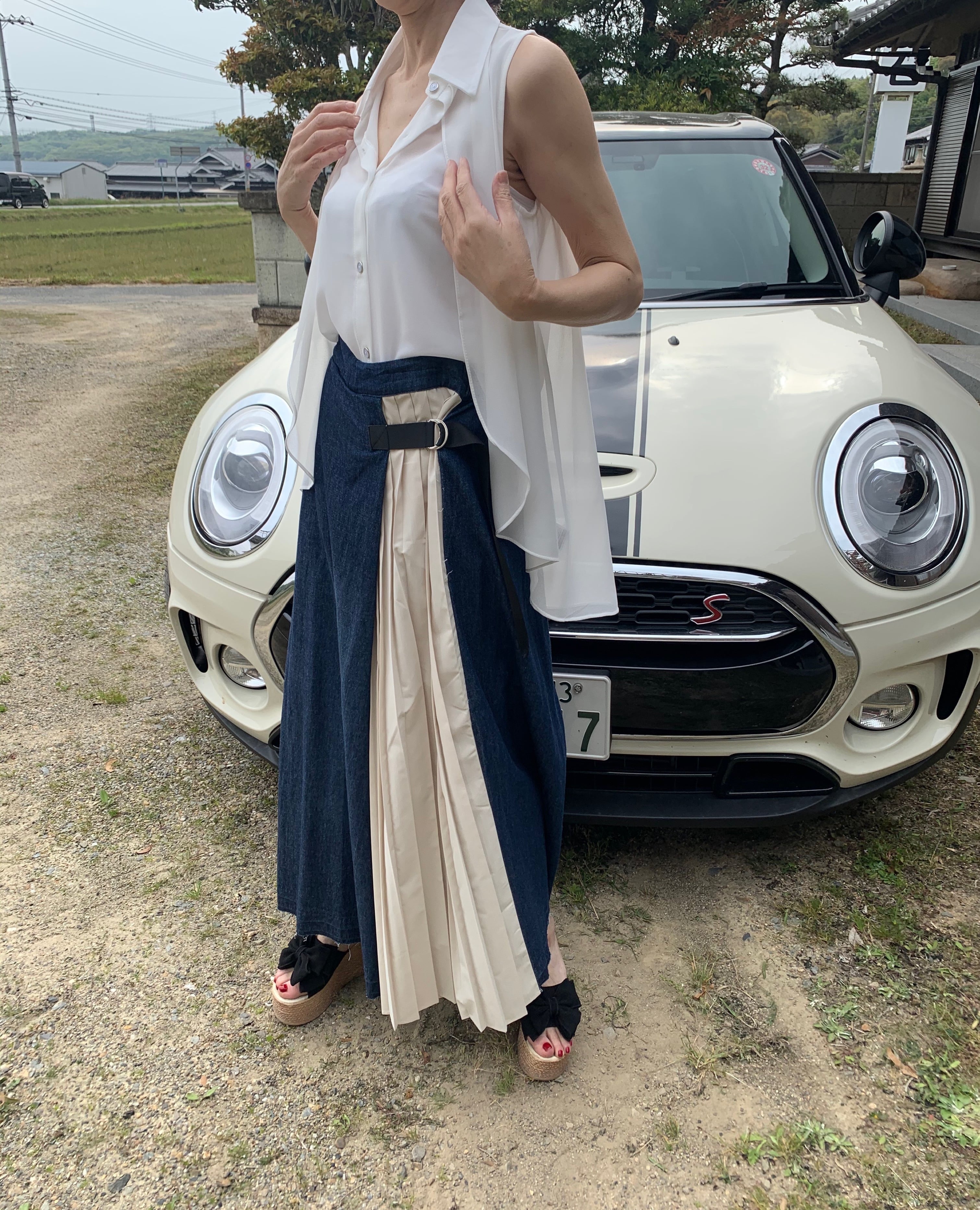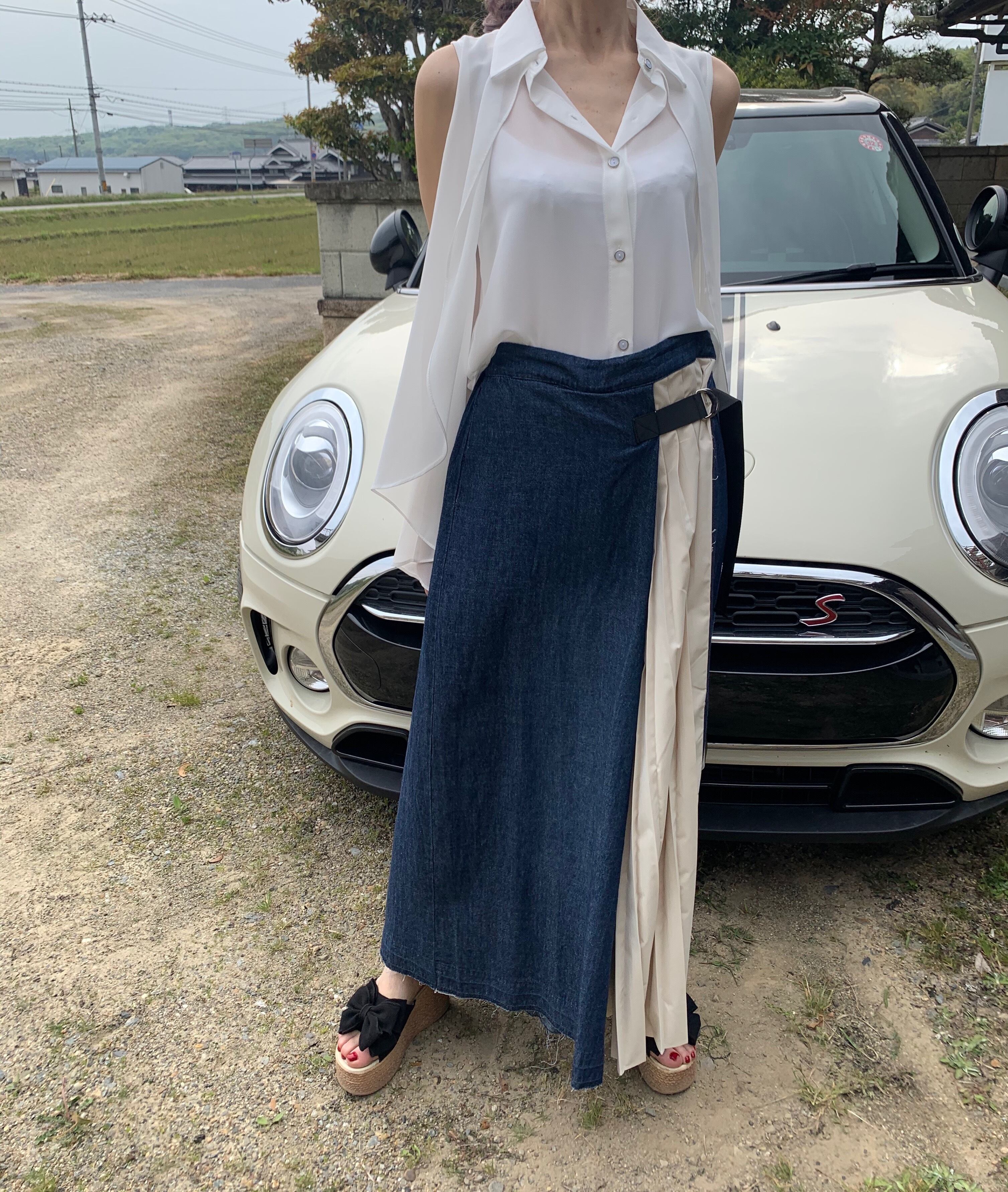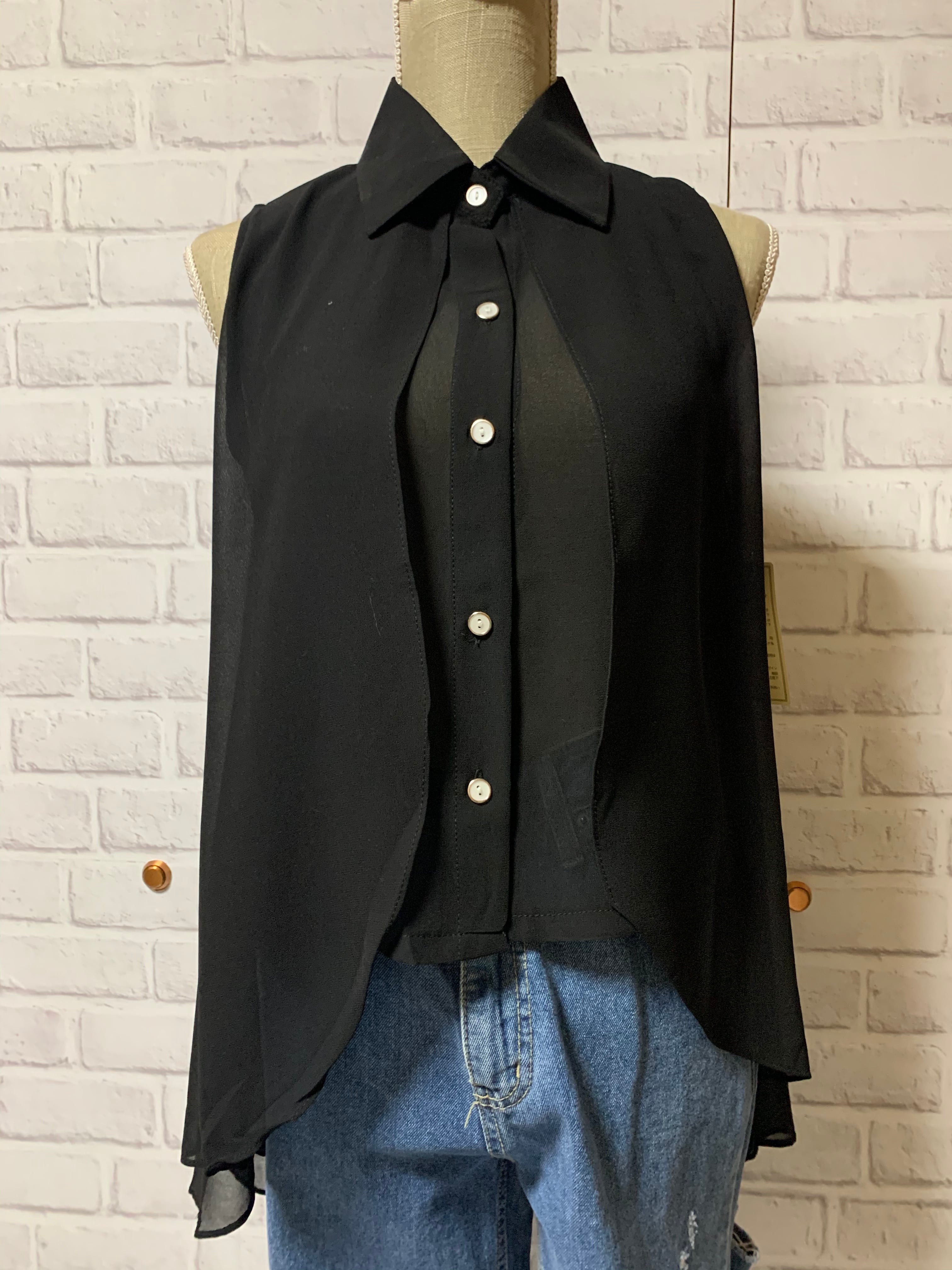 柔らかい薄手の生地で長めのシフォンがドッキングした可愛いブラウスです。